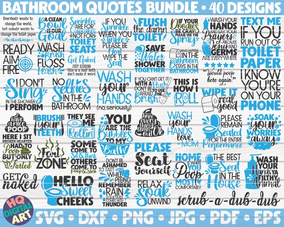 Funny Bathroom Quotes SVG Bundle / 40 Designs / Free Commercial