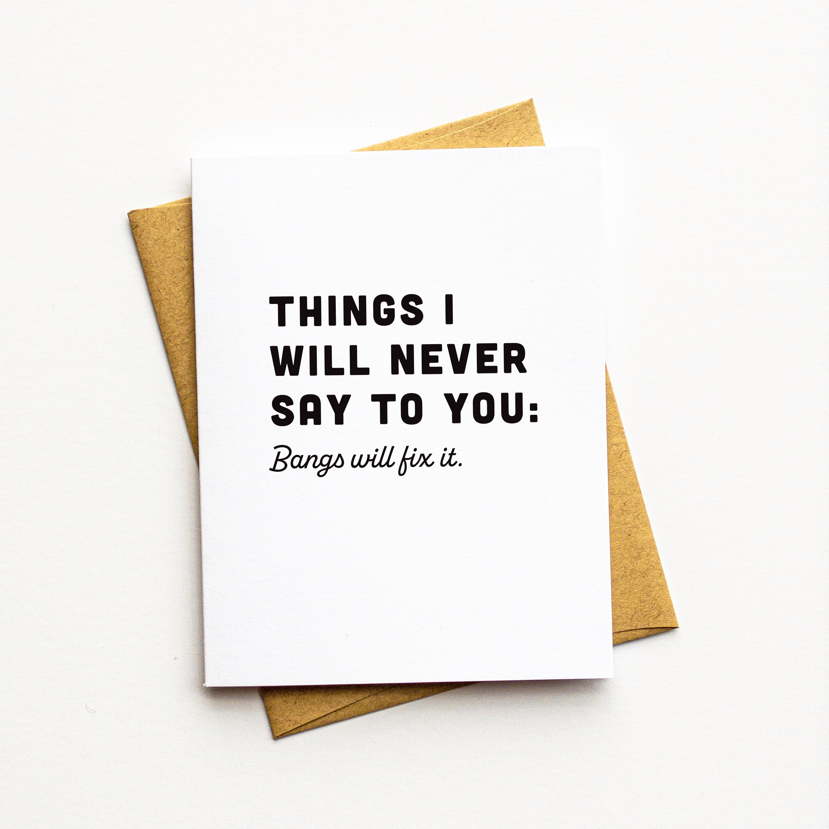 Funny Bangs Card Funny Breakup Card Funny Friendship Card Things I